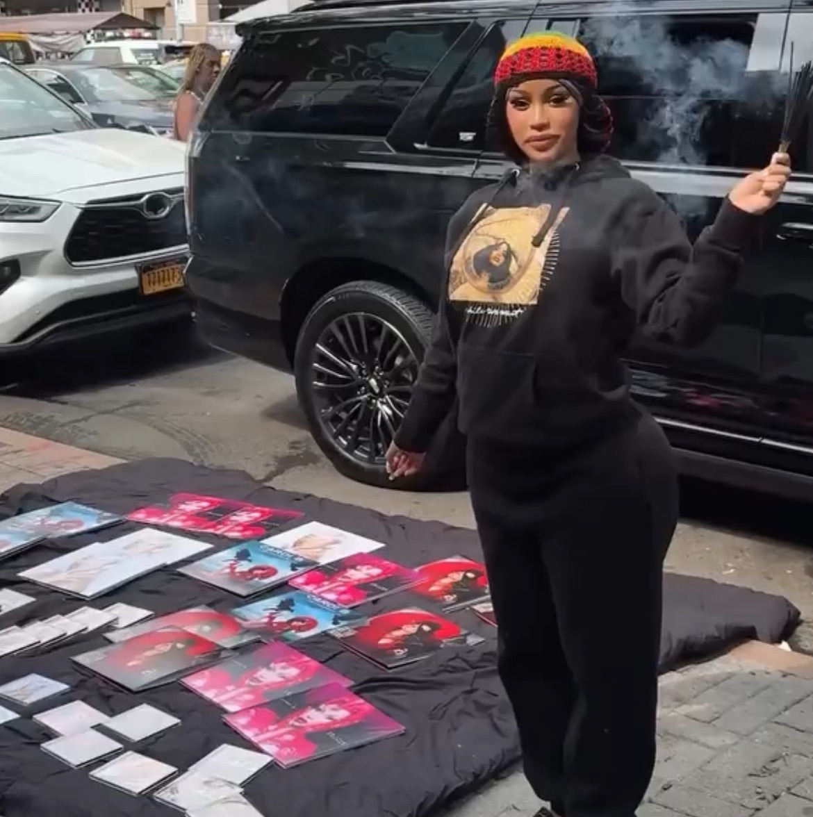 Cardi B vende il suo nuovo disco in strada a Manhattan