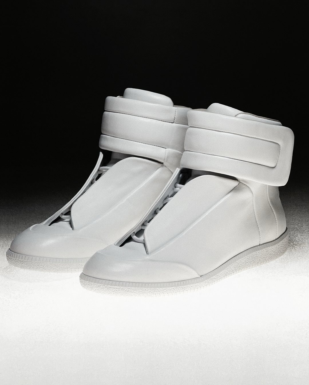 Ora la Future è tornata, ma nel suo ritorno, Maison Margiela ne ha mantenuta intatta l’essenza: taglio mid-top, chiusura nascosta, pannelli sovrapposti e finitura monocromatica.